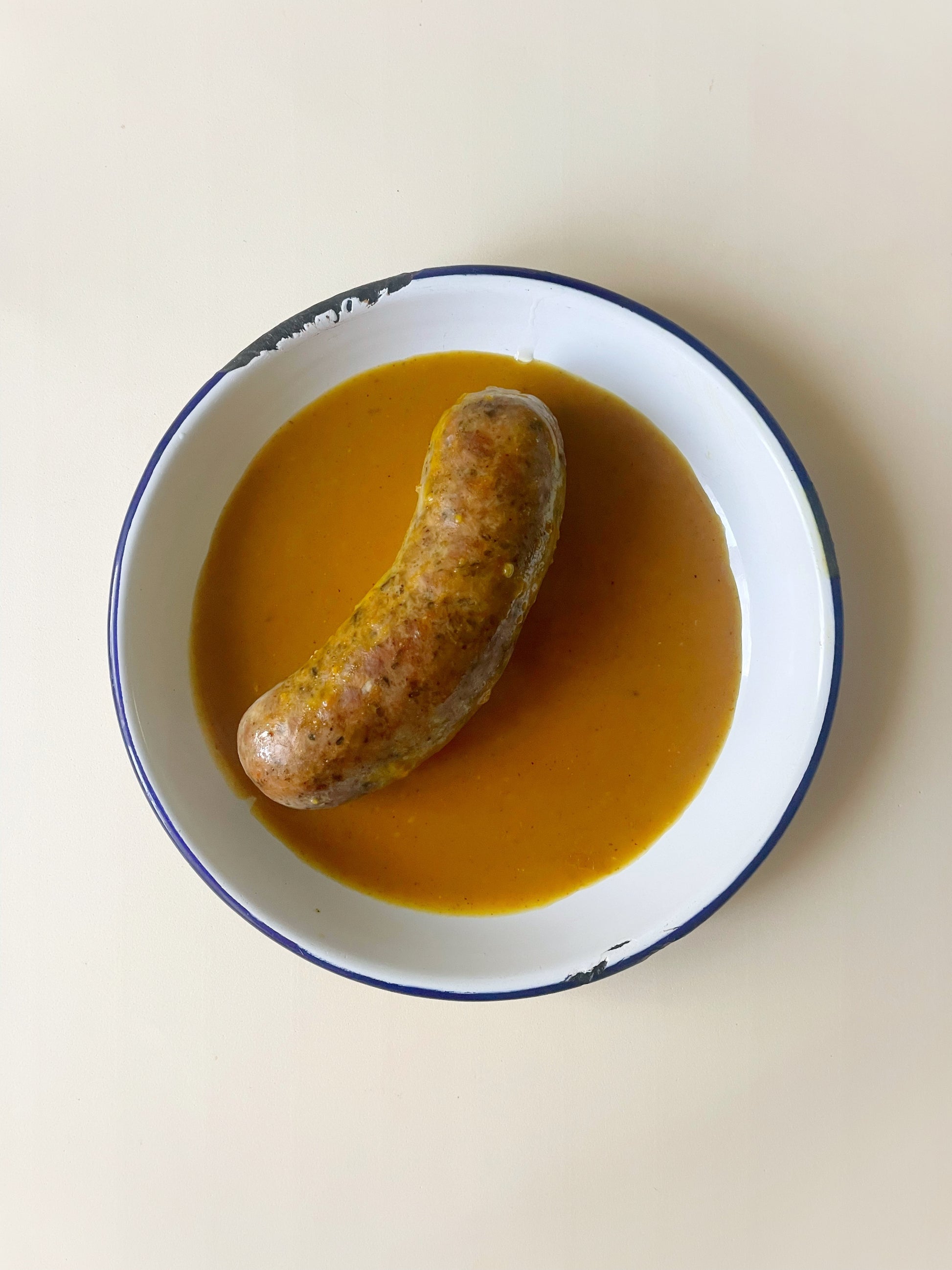 Az évek során ezt adaptáltam kolbász formára: egy currys, mandulás, zöldfűszeres kolbász.